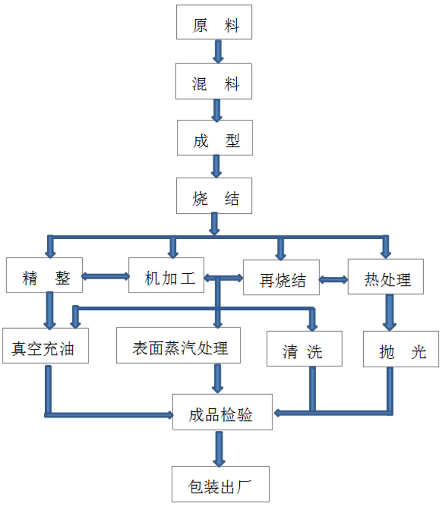 原料混合 > 成形 > 烧结 > 后续处理  > 成品检测